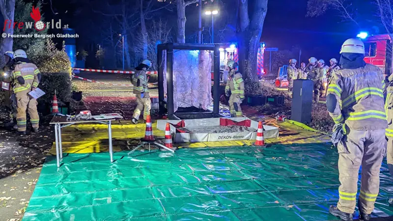 BERGISCH GLADBACH (DEUTSCHLAND): Am Samstagabend, 15. November 2025, wurde die Feuerwehr Bergisch Gladbach um 20:25 Uhr über Notruf zu einem Gefahrstoffaustritt im Kombibad Paffrath in der Borngasse alarmiert.