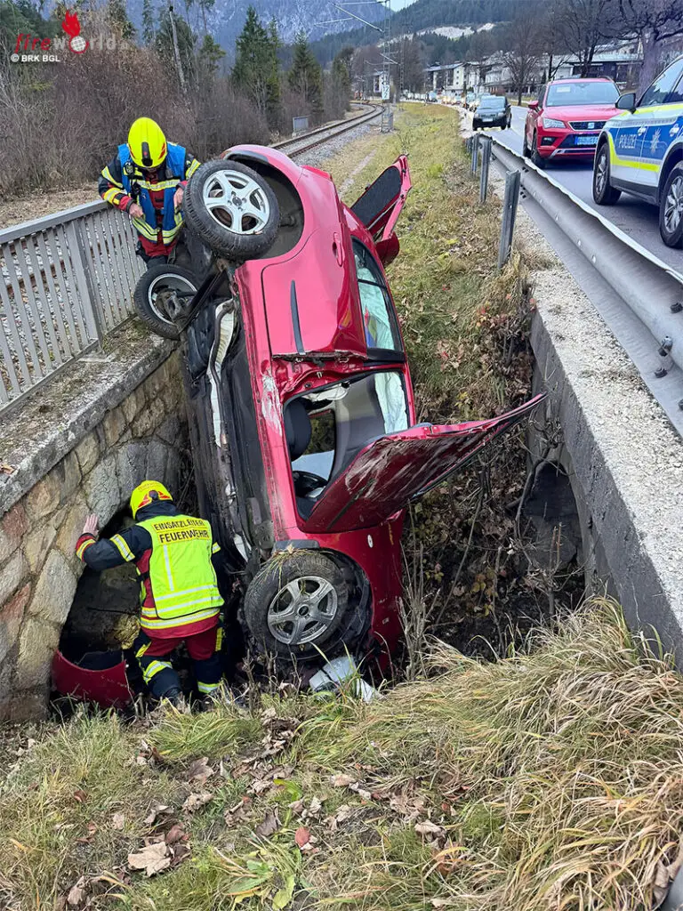 BISCHOFSWIESEN (BAYERN): Eine 76-jährige Ortsansässige ist am Sonntagnachmittag, 16. November 2025, kurz vor 16 Uhr vermutlich wegen einer akuten Erkrankung mit ihrem Nissan alleinbeteiligt von Bad Reichenhall kommend nach rechts von der B20 abgekommen, woraufhin sie die Leitplanke überfuhr, sich überschlug und zwischen der Bundesstraße und den Bahngleisen in den Seppengraben stürzte.