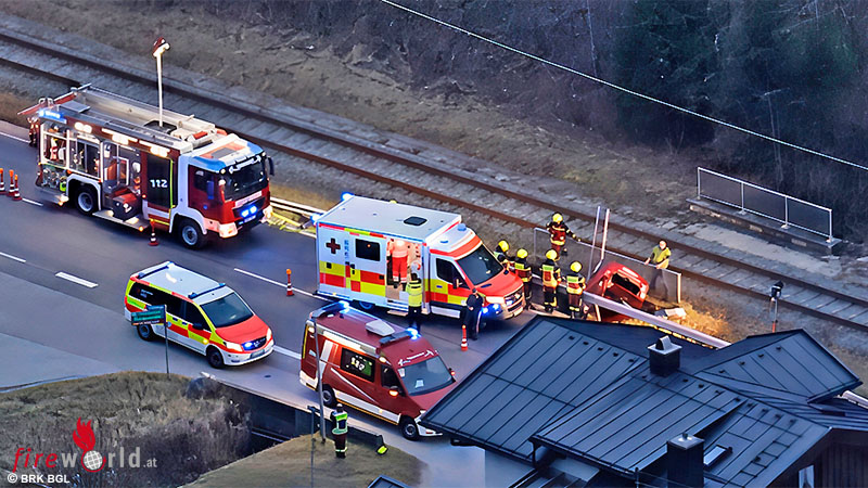 BISCHOFSWIESEN (BAYERN): Eine 76-jährige Ortsansässige ist am Sonntagnachmittag, 16. November 2025, kurz vor 16 Uhr vermutlich wegen einer akuten Erkrankung mit ihrem Nissan alleinbeteiligt von Bad Reichenhall kommend nach rechts von der B20 abgekommen, woraufhin sie die Leitplanke überfuhr, sich überschlug und zwischen der Bundesstraße und den Bahngleisen in den Seppengraben stürzte.