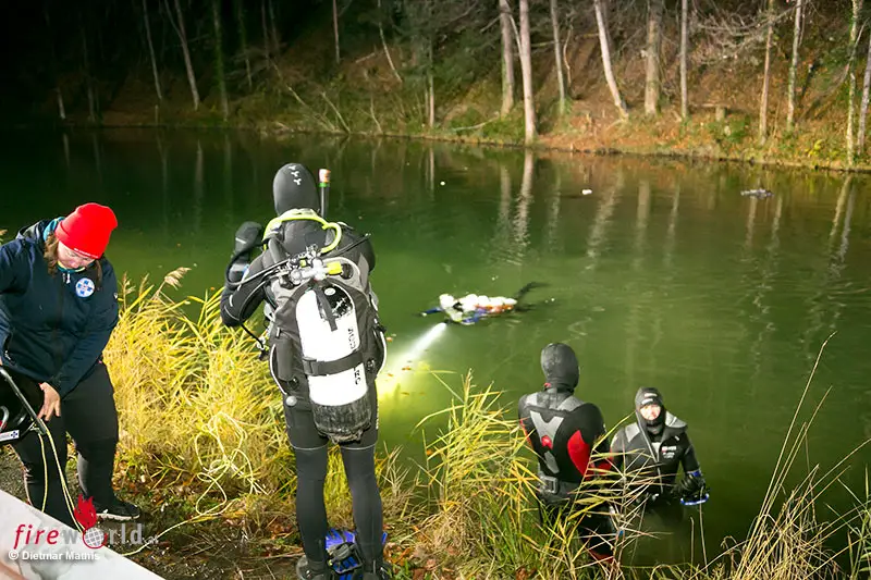 Die eintreffende Polizeistreife stellte ein im Schwarzen See vollständig unter Wasser befindliches Fahrzeug fest. Zwei Beamte versuchten umgehend durch Abtauchen zum Fahrzeug vorzudringen, was aufgrund der niedrigen Wassertemperatur sowie einer Tiefe von rund 3–4 Metern nicht möglich war. Kurz darauf erreichten Einsatzkräfte der Wasserrettung den Unfallort.