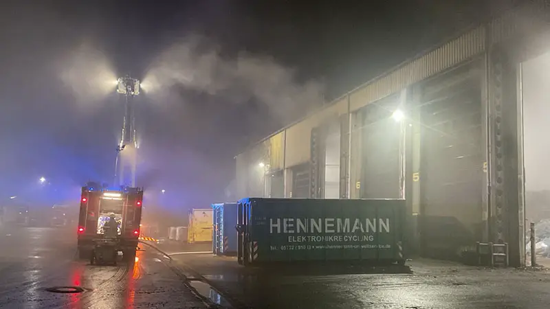 DORTMUND (DEUTSCHLAND): In den frühen Morgenstunden des 18. November 2025 wurde die Feuerwehr Dortmund um 03:53 Uhr zu einem Brand in einer Lagerhalle auf dem Betriebsgelände eines Recyclingunternehmens an der Pottgießerstraße alarmiert.