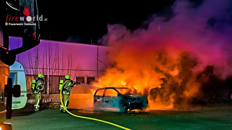 DETMOLD (DEUTSCHLAND): In der Nacht zum Dienstag, 18. November 2025, wurde die Feuerwehr Detmold um 00:46 Uhr zu einem brennenden Pkw an der Klingenbergstraße gerufen.