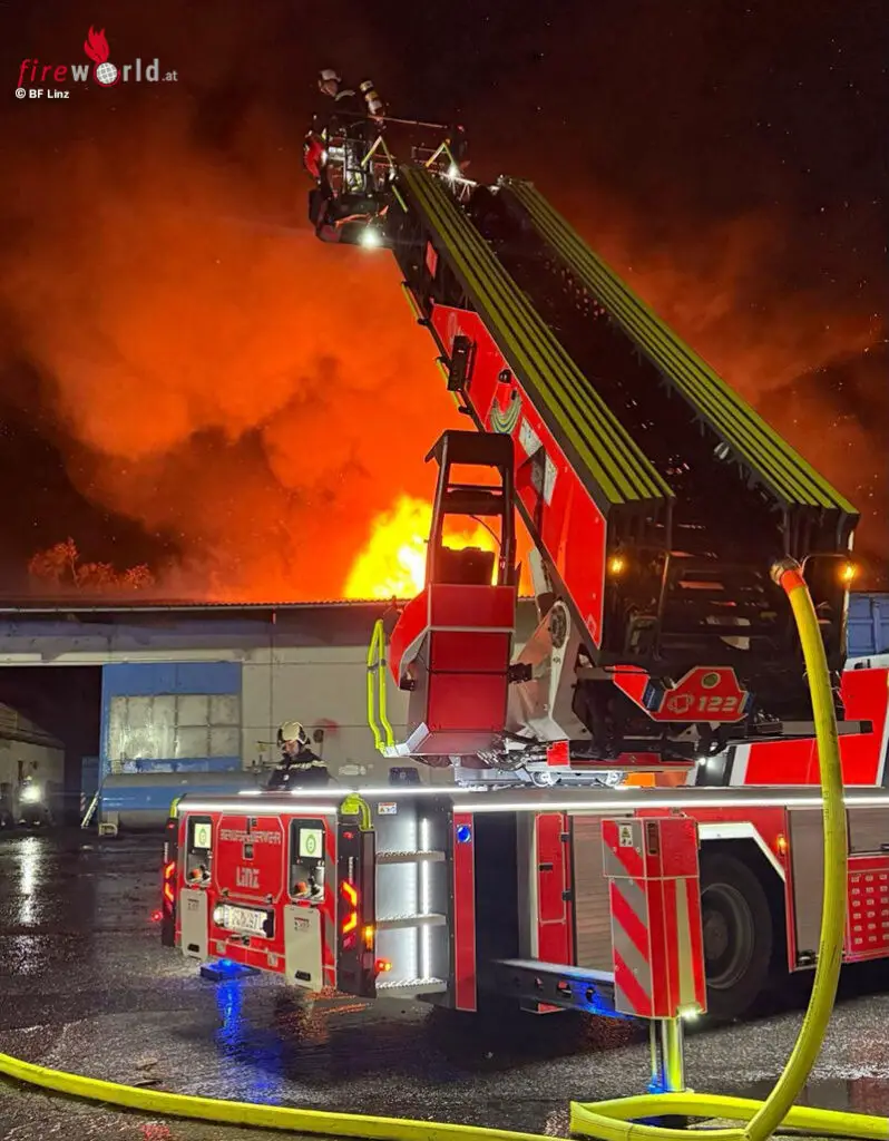 Gegen Mitternacht brach in einer Halle eines Linzer Recyclingunternehmens ein Feuer aus. Beim Eintreffen der ersten Kräfte der Feuerwehr stand ein größerer Hallenbereich bereits in Vollbrand. Die Berufsfeuerwehr Linz übernahm die Einsatzleitung und wurde von zehn freiwilligen Feuerwehren, Polizei, Rettungsdienst, Energieversorgern sowie der Linz AG Gas und Strom unterstützt.