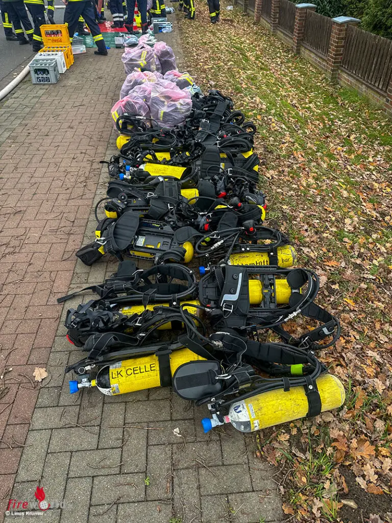 Für eine bessere Struktur teilte die Einsatzleitung die Einsatzstelle in mehrere Abschnitte auf, welche parallel abgearbeitet wurden. Die Feuerwehrtechnische Zentrale des Landkreis Celle wurde nachgefordert, um weitere Atemschutzgeräte zur Einsatzstelle zu bringen. Zusätzlich wurden weitere Atemschutzgeräteträger aus umliegenden Ortsfeuerwehren nachalarmiert.