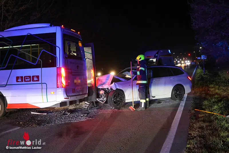 Oö: Zwei Verletzte bei Zusammenstoß Linienbus und Auto in Thalheim