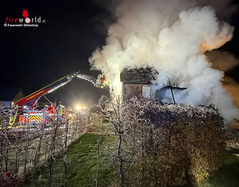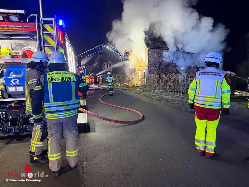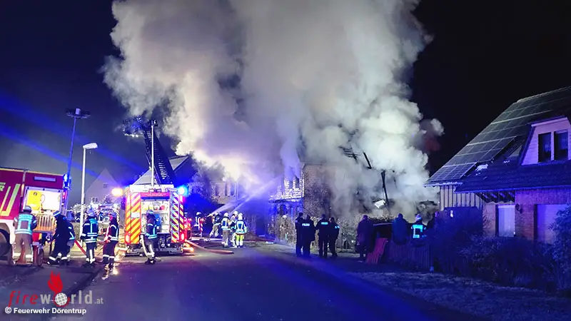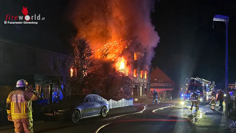 DÖRENTRUP (DEUTSCHLAND): Um 00:34 Uhr des Samstag, 22. November 2025, wurde die Feuerwehr Dörentrup gemeinsam mit dem Rettungsdienst und der Polizei unter dem Stichwort „Dachstuhlbrand mit Menschenleben in Gefahr“ in den Ortsteil Bega alarmiert.