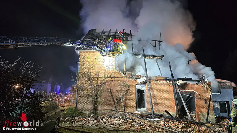 D: Explosion mit Großbrand in Wohnhaus in Dörentrup → ein Todesopfer gefunden