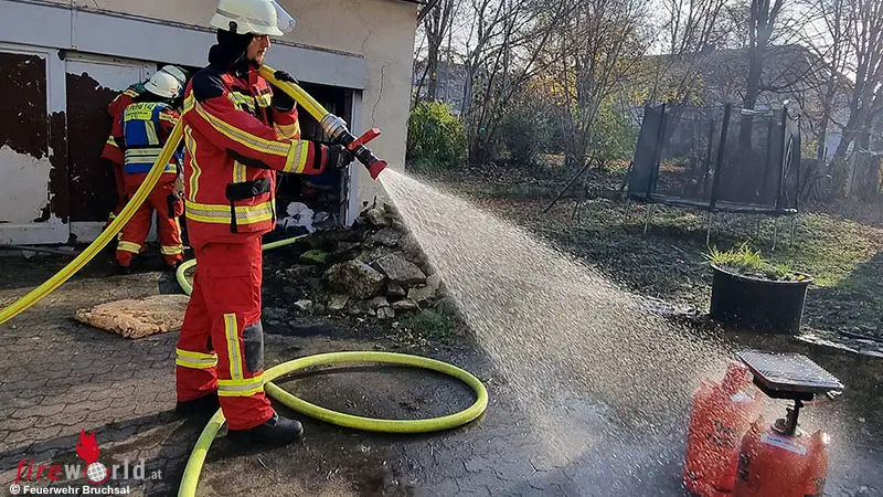Der Brand selbst konnte durch die Feuerwehr mit einem C-Rohr schnell unter Kontrolle gebracht werden. Bereits vor Eintreffen der Einsatzkräfte hatten Ersthelfer erste Löschmaßnahmen durchgeführt und mehrere im Schuppen gelagerte Gasflaschen ins Freie gebracht und gekühlt. Die Feuerwehr setzte ein weiteres C-Rohr ein, um die Gasflaschen endgültig herunterzukühlen und eine Gefährdung auszuschließen.