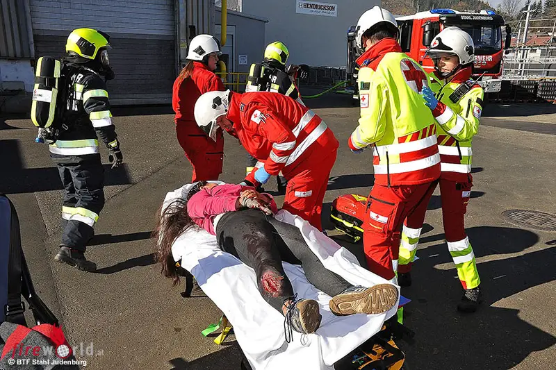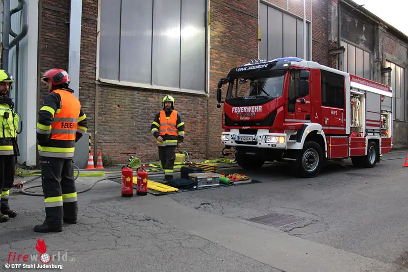 Um 11 Uhr erfolgte mittels Sirene und Pager die letzte Alarmierung. Gemeinsam mit der Feuerwehr Hetzendorf, der Feuerwehr Zeltweg, der Feuerwehr Judenburg und dem Roten Kreuz wurden wir zu einem Industriebrand im Westwerk mit drei vermissten Personen alarmiert. Es galt hierbei die Menschenrettung der vermissten Personen vom ATS Trupp HLF 2 Stahl Judenburg, ATS Trupp HLF 4 Judenburg und ATS Trupp TLFA 2000/200 Hetzendorf durchzuführen. Über das KLF Stahl Judenburg bzw. das LF-A Zeltweg wurde eine Zubringleitung aufgebaut, somit war eine ausreichende Wasserversorgung gewährleistet und es konnte auch ein umfangreicher Außenangriff und ein Schutz der Nebengebäude durchgeführt werden. Die Versorgung der verletzten Personen übernahm, in gewohnter Professionalität, das Rote Kreuz Judenburg und das Rote Kreuz Fohnsdorf.