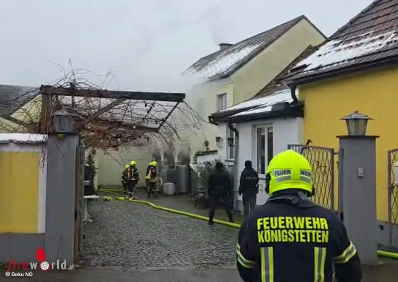 Die Feuerwehren Königstetten, Wolfpassing, Zeiselmauer sowie St. Andrä-Wördern bekämpften den Brand unter Einsatz von Atemschutz und einem C-Strahlrohr. Anschließend wurde ein Belüftungsgerät in Stellung gebracht, um das Gebäude rauchfrei zu machen.