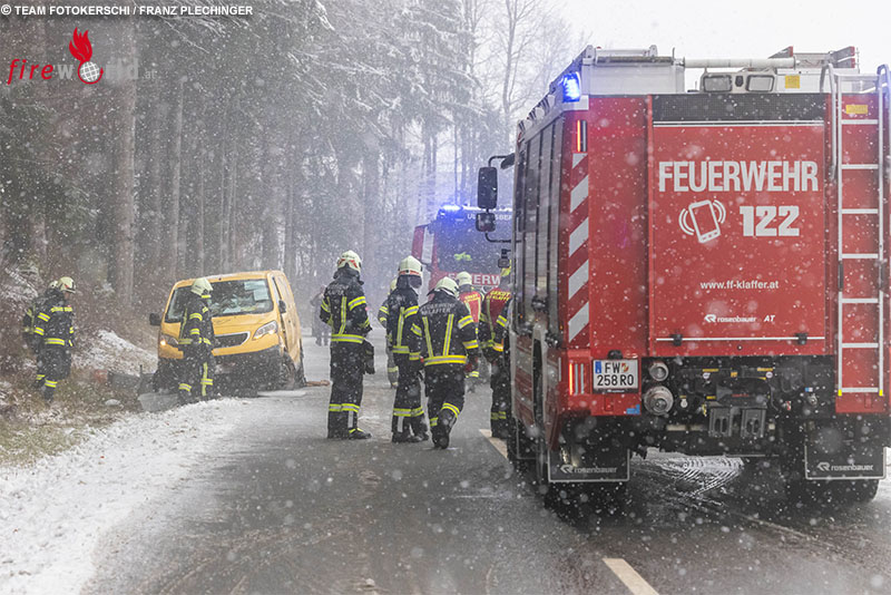 ULRICHSBERG (STMK): Am Dienstagvormittag, 25. November 2025, wurden die Feuerwehren Klaffer, Ulrichsberg und Ödenkirchen zu einem Verkehrsunfall mit eingeklemmter Person im Bereich Stangl alarmiert.