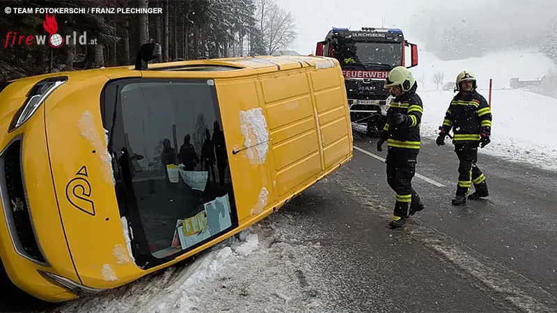 Oö: Pkw bei winterlichen Bedingungen in Ulrichsberg in Seitenlage