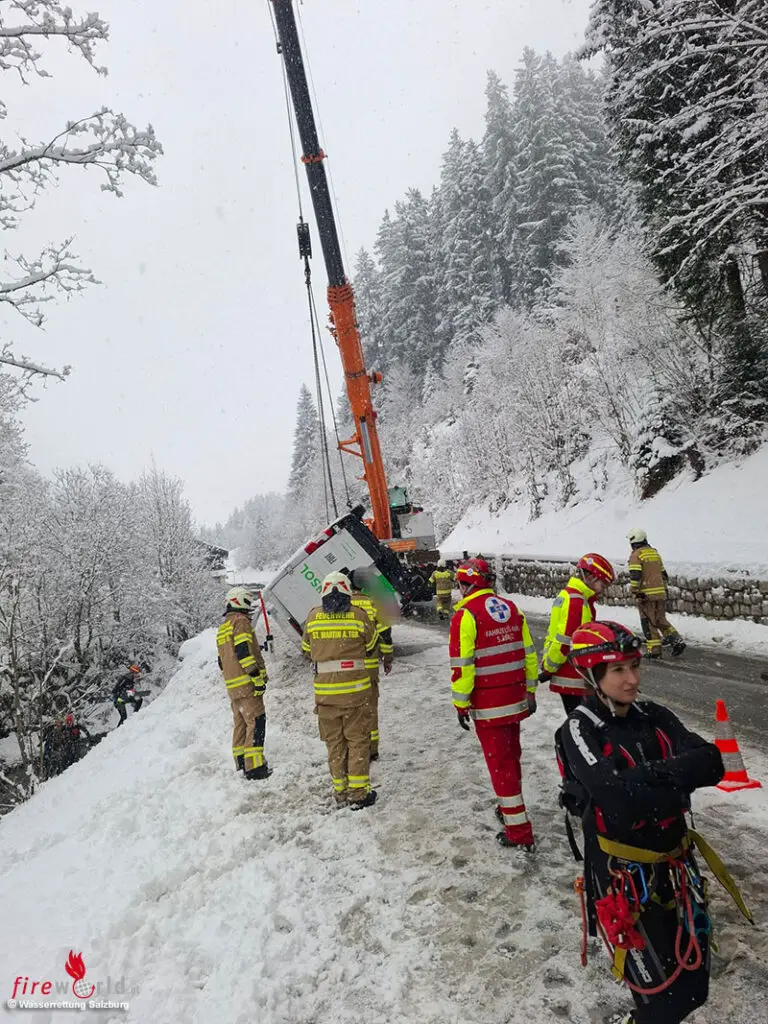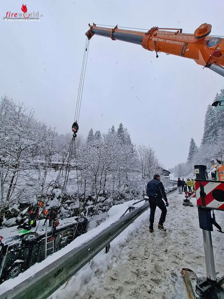 ST. MARTIN AM TENNENGEBIRGE (SBG): Zu einem verkehrstechnisch und logistisch anspruchsvollen Einsatz wurden die Einsatzkräfte am 25. November 2025 auf die Pass Gschütt Bundesstraße (B166) alarmiert. Zwischen den Ortschaften Hüttau und St. Martin war ein Kleintransporter von der Fahrbahn abgekommen und im angrenzenden Martinsbach gelandet.