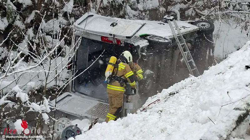 ST. MARTIN AM TENNENGEBIRGE (SBG): Zu einem verkehrstechnisch und logistisch anspruchsvollen Einsatz wurden die Einsatzkräfte am 25. November 2025 auf die Pass Gschütt Bundesstraße (B166) alarmiert. Zwischen den Ortschaften Hüttau und St. Martin war ein Kleintransporter von der Fahrbahn abgekommen und im angrenzenden Martinsbach gelandet.