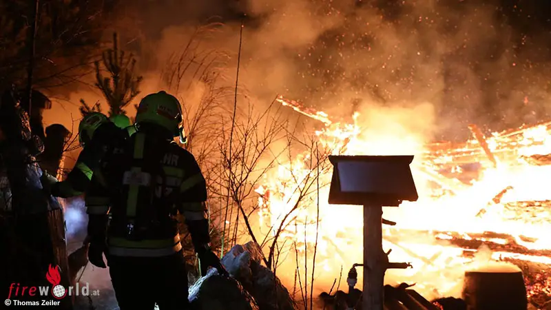 „Meterhohe Flammen und dichte Rauchschwaden schlugen den 68 eingesetzten Feuerwehrmänner und Feuerwehrfrauen schon während der Anfahrt entgegen“, schildert Einsatzleiter Brandmeister Lukas Sitter von der Feuerwehr Seckau.