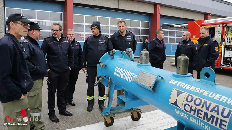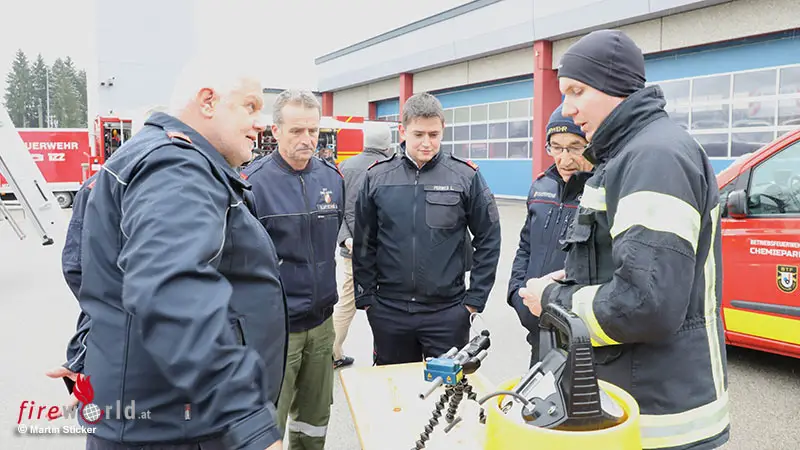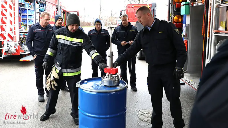 Im Rahmen einer Präsentation speziell für den Chemieeinsatz entwickelter Gerätschaften, darunter ein Fassknacker, diverse Messgeräte zur Gefahrstoffanalyse, ein Bergebehälter für Gasflaschen sowie Spezialfahrzeuge, wie beispielsweise jenes der Betriebsfeuerwehr Infineon Villach, fand ein äußerst interessanter und informativer Schulungstag an der Landesfeuerwehrschule Kärnten erneut einen viel zu raschen Abschluss.