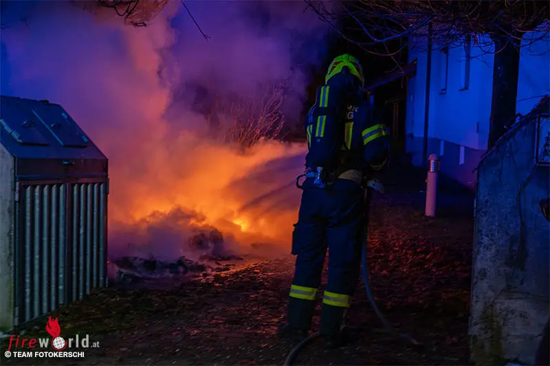 WARTBERG AN DER KREMS (OÖ): In der Nacht auf Donnerstag, 27. November 2025, wurden die Feuerwehren Wartberg an der Krems und Strienzing mit dem Einsatzstichwort „Brand Abfall im Freien“ alarmiert. Zwei Abfallcontainer standen in Vollbrand.