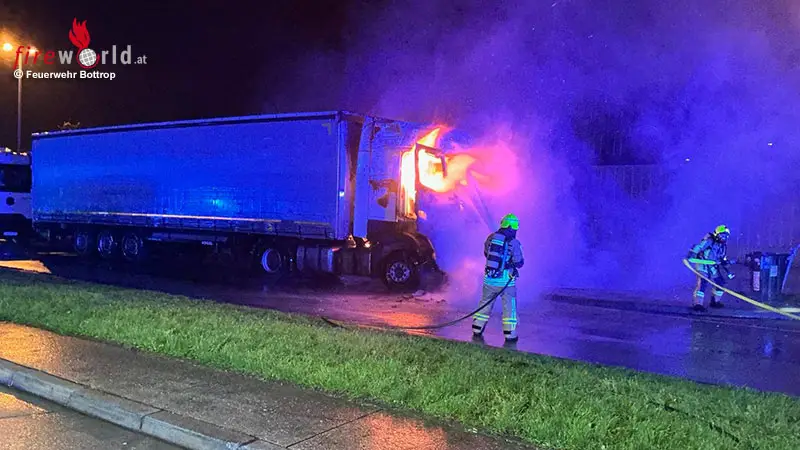 Daraufhin wurden umgehend mehrere Löschfahrzeuge der Feuerwehr Bottrop zur Einsatzstelle alarmiert. Beim Eintreffen fanden die Einsatzkräfte einen mit Holz beladenen Sattelzug vor. Die Fahrzeugkabine war in Vollbrand geraten. Unverzüglich wurden umfassende Löschmaßnahmen eingeleitet. Der Fahrer des Fahrzeugs konnte sich rechtzeitig in Sicherheit bringen und wurde nicht verletzt.