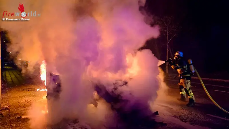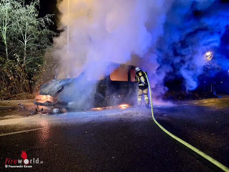 D: Kleintransporter brennt in Essen in voller Ausdehnung