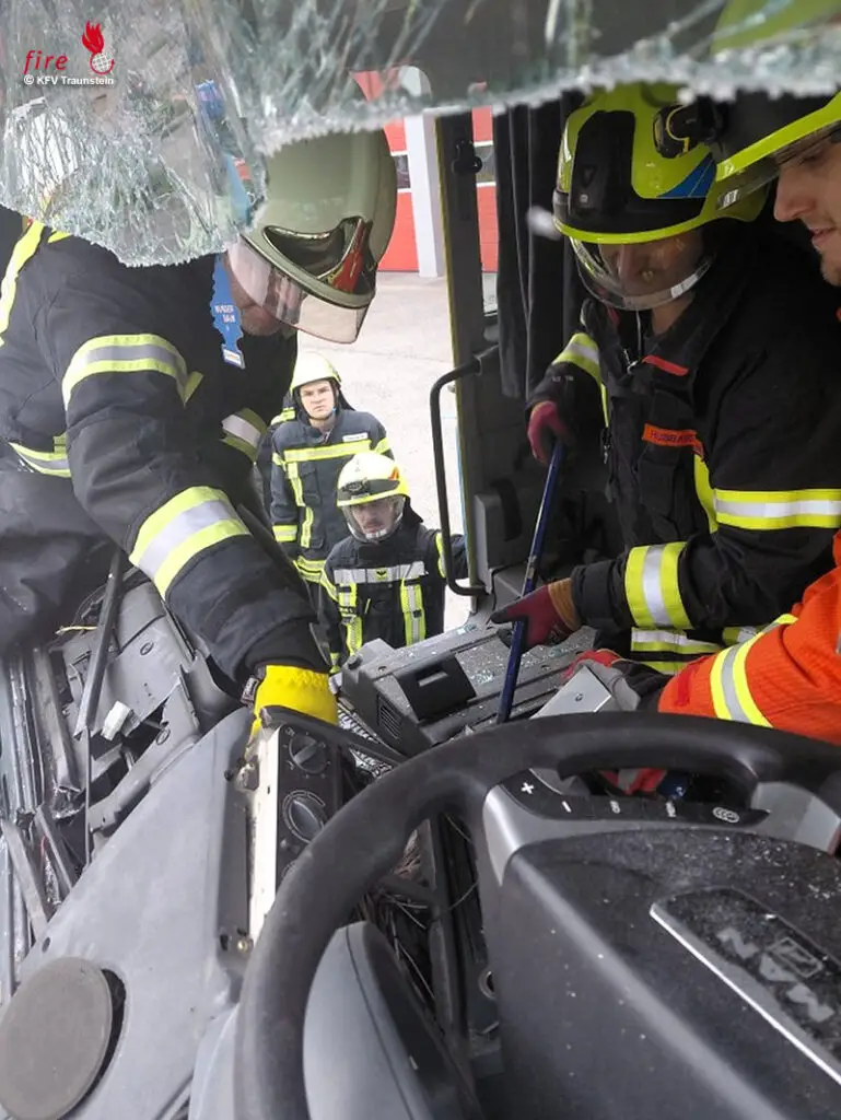 Dabei lernten die Aktiven der Feuerwehren Ruhpolding, Unterwössen, Schnaitsee, Eisenärzt, Surberg, Chieming, Vachendorf, Schleching, Seebruck, Traunstein, Bergen, Traunreut, Holzhausen, Reit im Winkl, Vogling, Übersee, Törring, Tengling, Wonneberg, Wolkersdorf, Kay, Trostberg, Obing, Vogling und Siegsdorf unter anderem, wie man die schweren Fahrzeugtüren kontrolliert überbiegt und anschließend sichert. Dies hat gegenüber dem Einsatz von Schere und Spreizgerät einen deutlichen Zeitvorteil und schafft häufig bereits den nötigen Zugang zur patientenschonenden Rettung.