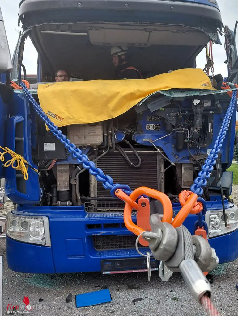 Für die Praxisübungen standen zwei LKWs zur Verfügung, die von der Trostberger Spedition Zimmermann beziehungsweise der Firma RIGRA für die Ausbildungseinheiten zur Verfügung gestellt wurden. „Das Siegsdorfer Abschleppunternehmen hat sich außerdem um den Abtransport der LKWs zum Verwertungsbetrieb gekümmert“, informiert Matthias Seidenfuß und ergänzt, „das war uns eine große Hilfe, denn einen LKW zu transportieren ist nicht ohne weiteres möglich“.
