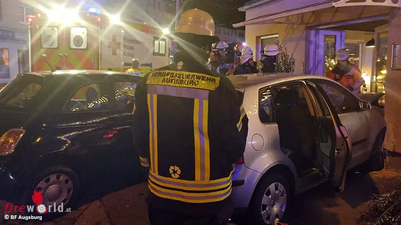 Bayern: Pkw steckt nach Unfall in Augsburg im Eingangsbereich eines Restaurants