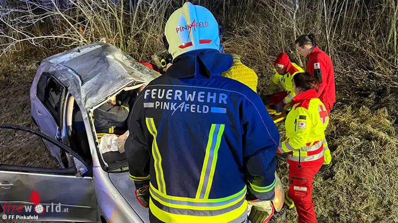 Die Feuerwehr Pinkafeld rückte mit einem ELF (Einsatzleitfahrzeug), einem SRF (schweres Rüstfahrzeug), einem RLF (Rüstlöschfahrzeug), einem WLF (Wechselladerfahrzeug) und 20 Mann zum Einsatz aus. Ein Pkw war aus ungeklärter Ursache von der Fahrbahn abgekommen, überschlug sich mehrmals und kam nach einem wuchtigen Aufprall im Graben zum Liegen.