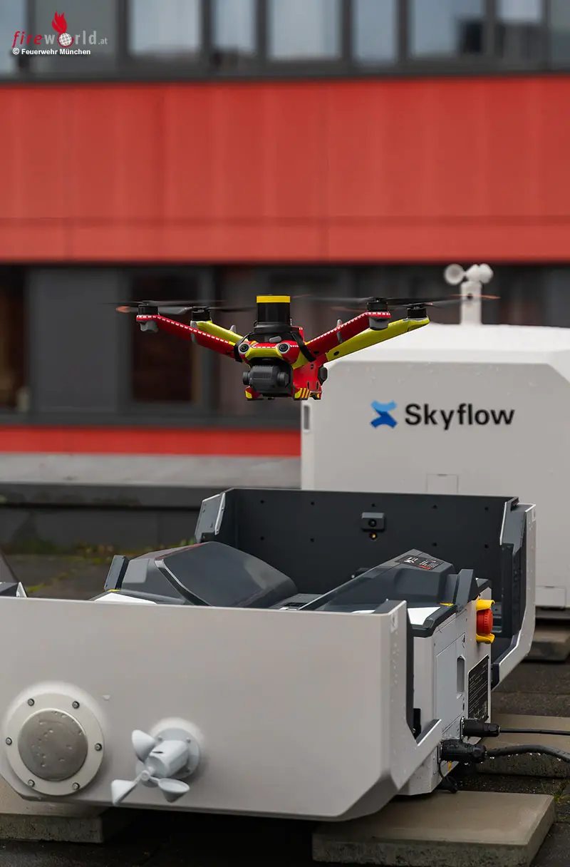 MÜNCHEN (BAYERN): Ab Mittwoch, den 3. Dezember 2025 setzt die Feuerwehr München ein automatisiertes Drohnensystem ein, das im Rahmen eines Pilotprojekts gemeinsam mit dem Unternehmen Skyflow erprobt wird. Ziel des Projekts ist es, Erfahrungen im operativen Einsatz zu gewinnen und das Potenzial automatisierter Drohnensysteme zur Verbesserung der Einsatzführung und Gefahrenabwehr zu evaluieren. Damit geht die Feuerwehr München als Vorreiter voran: Es ist der erste automatisierte Drohnenbetrieb in dieser Größenordnung im deutschen Feuerwehrwesen.