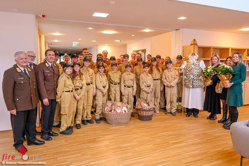 Auch heuer, am Samstag, dem 29. November 2025, trafen sich die Feuerwehrjugendgruppen Elsbethen, Grödig, Großgmain und Wals-Siezenheim aus dem Abschnitt 4 sowie die Feuerwehrjugendgruppe Henndorf am Wallersee aus dem Abschnitt 3 in Eugendorf. Gemeinsam mit dem Nikolaus überbrachten sie die Nikolaussackerl mit Süßigkeiten an die Bewohnerinnen und Bewohner. Die Freude und das Leuchten in ihren Augen waren unvergleichlich. Nach der Bescherung verbrachten die Jugendlichen noch Zeit mit den Bewohnerinnen und Bewohnern in den verschiedenen Gruppenräumen.