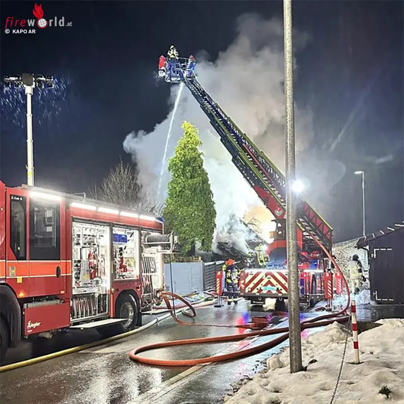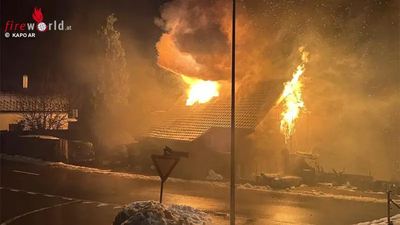 LUTZENBURG (SCHWEIZ): Am Sonntagabend, 30. November 2025, brach in Wienacht-Tobel ein Brand aus. Das Doppelhaus wurde zerstört, keine Verletzten.