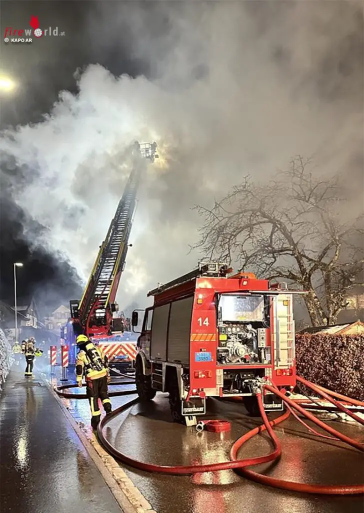 Schweiz: Brennendes Doppelhaus in Lutzenburg → 130 Kräfte im Einsatz