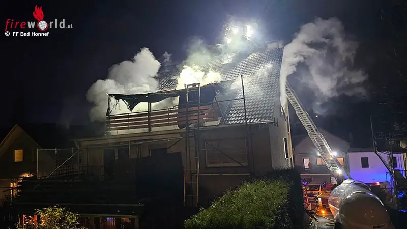 BAD HONNEF (DEUTSCHLAND): Am frühen Abend des 1. Dezember 2025 wurde die Freiwillige Feuerwehr Bad Honnef zu einem Gebäudebrand mit Menschenleben in Gefahr im Stadtteil Selhof alarmiert. Unmittelbar nach Eintreffen der ersten Einsatzkräfte konnte eine Person aus dem Erdgeschoss des Mehrfamilienhauses gerettet werden. In der Dachgeschosswohnung des Gebäude brannte es, wobei die Flammen in den Dachstuhl überschlugen.
