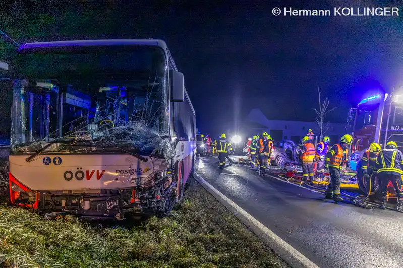 Ein 52-jähriger bosnischer Staatsbürger aus Wels fuhr mit seinem Linienbus am 4. Dezember 2025 gegen 16:40 Uhr auf der Eferdinger Landesstraße B129 im Gemeindegebiet von Alkoven Richtung Linz. Zur selben Zeit war ein 70-jähriger Autolenker aus dem Bezirk Eferding gemeinsam mit seiner 67-jährigen Ehefrau in diesem Bereich in der Gegenrichtung unterwegs.
