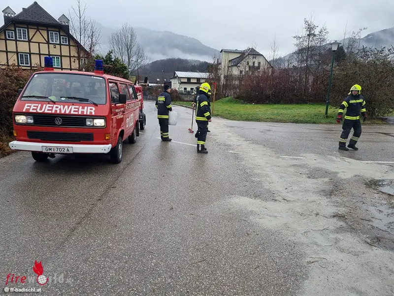 Mit mehreren Säcken Ölbindemittel konnte die Verschmutzung der Straße schnell behoben und eine Gefährdung für die Umwelt verhindert werden. Im Einsatz standen die Hauptfeuerwache Bad Ischl, die Feuerwachen Reiterndorf und Perneck sowie eine Streife der Polizei.