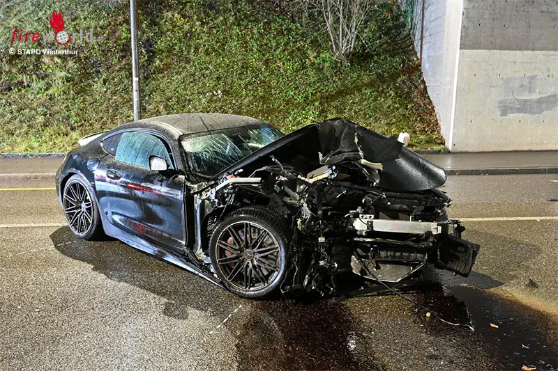 Schweiz: Mit 550 PS-Sportwagen in Winterthur gegen Mauer geprallt → Lenker verletzt und festgenommen
