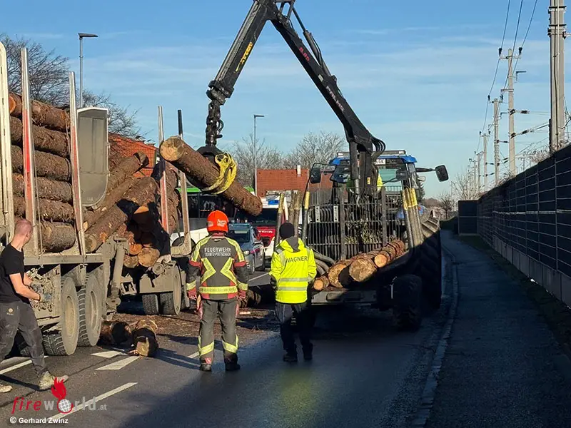 TERNITZ (NÖ): Am Dienstag, dem 10. Dezember 2025, wurde die Feuerwehr Ternitz-Pottschach um 12:11 Uhr zu einem technischen Einsatz der Alarmstufe T1 alarmiert. Ein mit Holz beladener Lkw hatte im Einsatzgebiet nach einer Vollbremsung einen Teil seiner Ladung verloren, in weiterer Folge trat Hydrauliköl aus und verunreinigte die Fahrbahn.