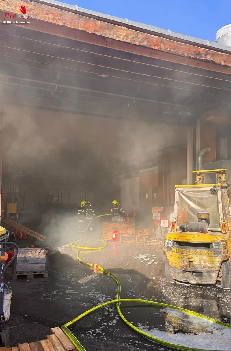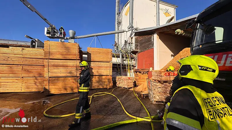 Nö: Mehrere Feuerwehren zum Brand einer Absauganlage in Betrieb in Oed-Öhling alarmiert