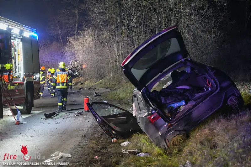 Durch den Unfall wurden beide Autos von der Straße geschleudert, wobei der Pkw des 29-Jährigen auf dem Dach zum Liegen kam. Das Fahrzeug des 18-Jährigen kam ebenfalls von der Fahrbahn ab und wurde in das links angrenzende Feld geschleudert. Durch den Unfall wurden nach ersten Erhebungen vor Ort zwei Personen schwer verletzt und drei Insassen leicht.