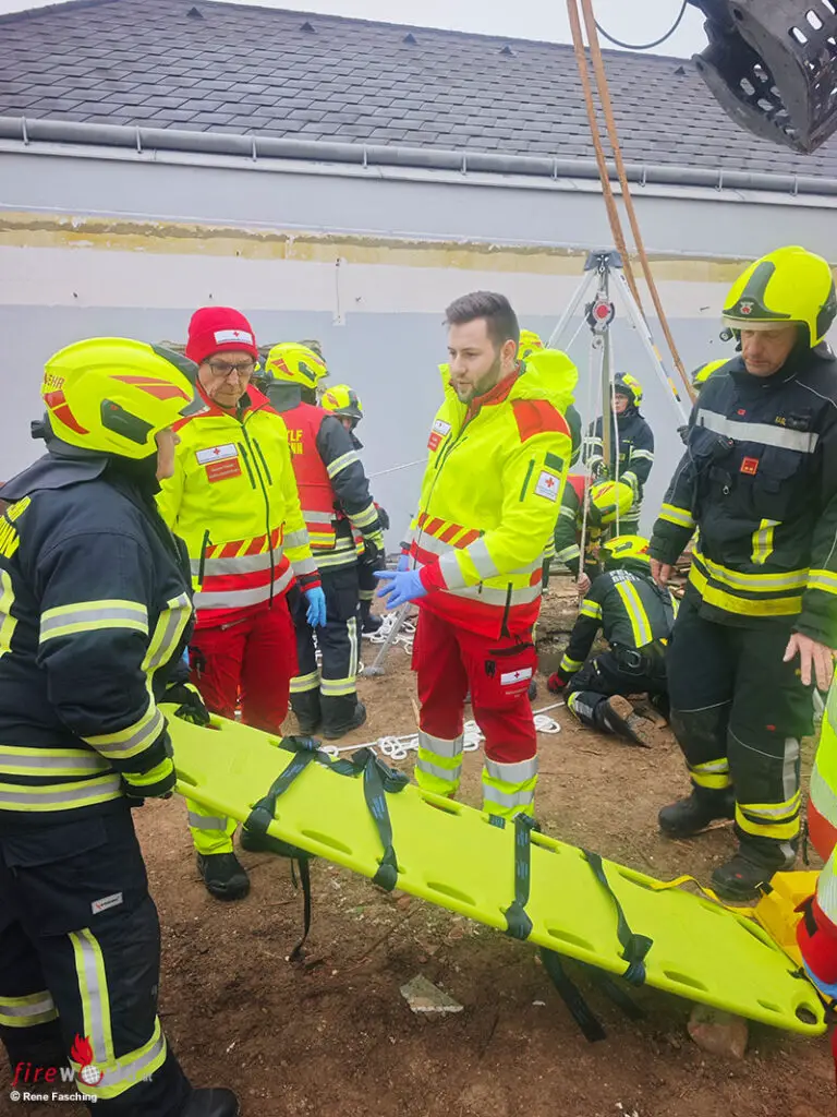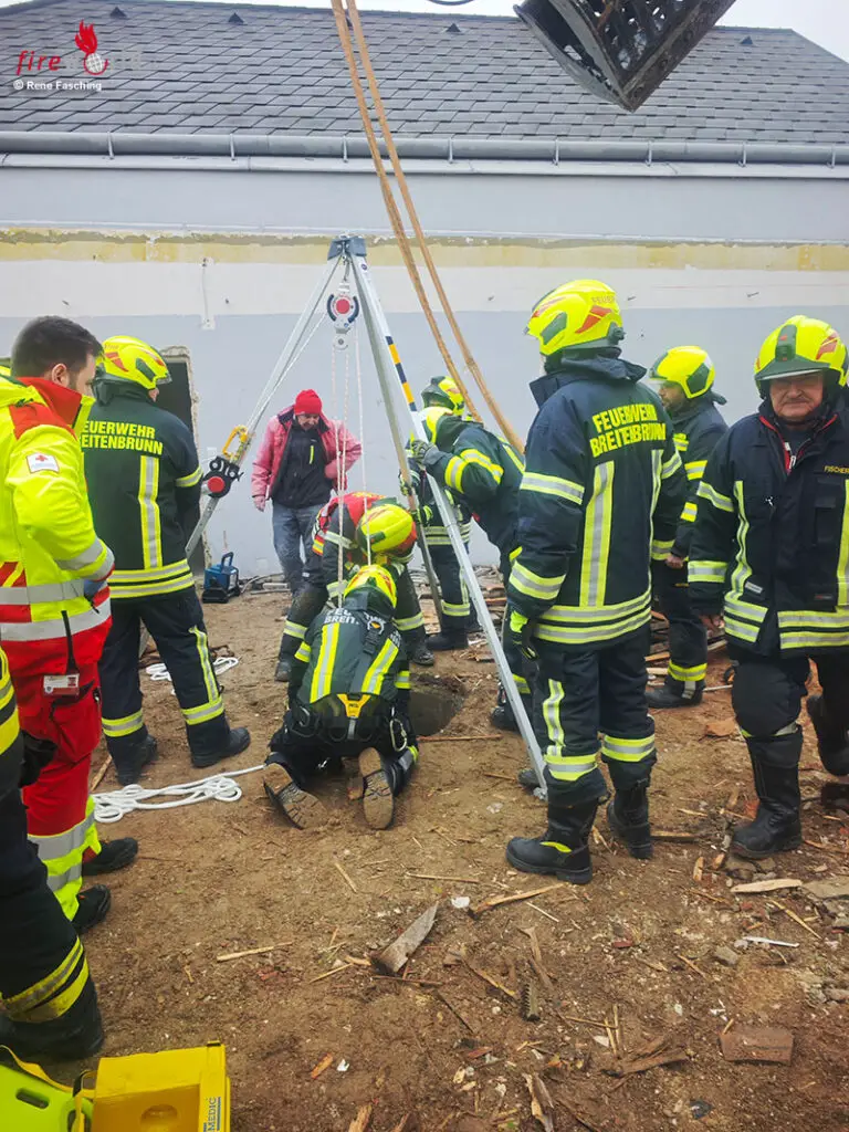 BREITENBRUNN (BGLD): Kurz vor 11:30 Uhr wurden die Feuerwehren Breitenbrunn und Winden am 16. Dezember 2025 zu einer Person in Notlage alarmiert. Ein Arbeiter war aus bislang ungeklärter Ursache auf einer Baustelle in einen rund 7 bis 10 Meter tiefen Brunnenschacht gestürzt.