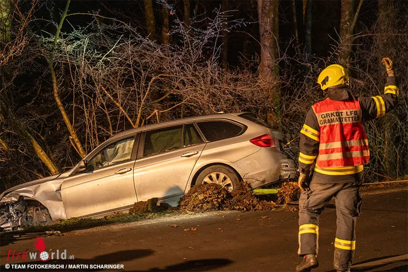 Um 06.12 Uhr wurden die Freiwilligen Feuerwehren Lichtenberg und Gramastetten zu einem Einsatz alarmiert. Ein Fahrzeuglenker war auf dem Weg in Richtung Linz aus bislang unbekannter Ursache von der Fahrbahn abgekommen und über eine Böschung in den angrenzenden Wald gestürzt. Dabei wurden beide Vorderräder des Autos durch den Aufprall abgerissen.