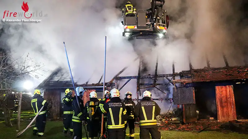 RIEDLINGSDORF (BGLD): Am 17. Dezember 2025 brach um 21:45 Uhr in einem Wirtschaftsgebäude in Riedlingsdorf ein Brand aus. Aufgrund der Lage wurde umgehend die höchste Alarmstufe B3 ausgelöst, gleichzeitig rückten die Feuerwehren Oberwart und Pinkafeld mit aus.