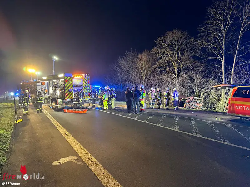 WERNE (DEUTSCHLAND): Am Freitagabend, 19. Dezember 2025, wurden die Löschzüge Stockum und Mitte der Freiwilligen Feuerwehr Werne um 21:05 Uhr mit dem Alarmstichwort „TH2 Person – Verkehrsunfall, Person klemmt“ in die Nordlippestraße alarmiert.