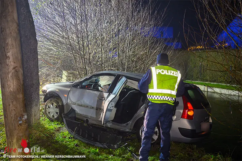 Gegen 20:46 Uhr wurden die Einsatzkräfte zu einem verunfallten Pkw im Bereich Mühlbachstraße alarmiert. Das Fahrzeug war aus bislang unbekannter Ursache von der Fahrbahn abgekommen, prallte gegen mehrere Sträucher und Bäume und kam in unmittelbarer Nähe eines Baches zum Stillstand. Es bestand die Gefahr, dass der Pkw in das Bachbett stürzen könnte.