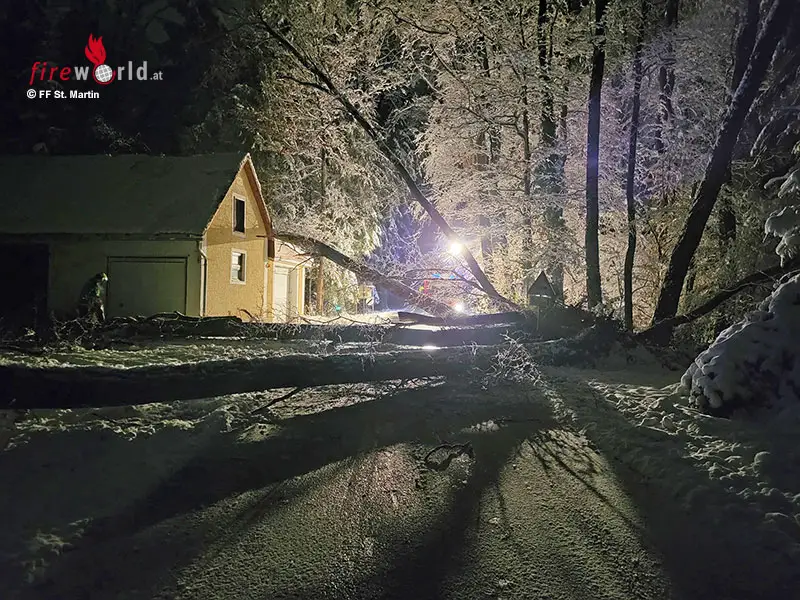 BEREICH DEUTSCHLANDSBERG (STMK): Der angekündigte Schneefall sorgte am 24. und 25. Dezember 2025 für zahlreiche Feuerwehreinsätze im Bereichsfeuerwehrverband Deutschlandsberg. Waren es am 24.12. Fahrzeugbergungen und Unfälle, so gingen die Einsätze am Abend zu umgestürzten Bäumen über. 350 Feuerwehrleute standen bis zum Vormittag des Christtages im Einsatz.