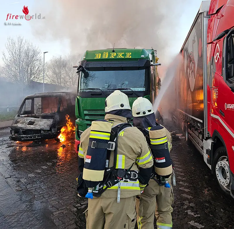 LEHRTE (DEUTSCHLAND): Am zweiten Weihnachtsfeiertag, 26. Dezember 2025, wurde die Feuerwehr Lehrte gegen 15:23 Uhr zu einem Fahrzeugbrand auf die Raststätte Lehrter See in Fahrtrichtung Berlin alarmiert. Grund der Alarmierung war ein brennender Transporter im Motorraum. Das Feuer drohte auf zwei danebenstehende Lkws überzugreifen.