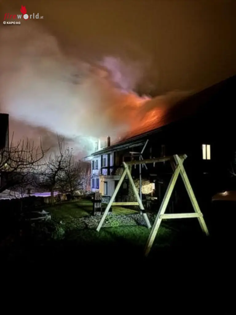 Schweiz: Weihnachts-Dachstock-Brand in Sarmenstorf und brennender Weihnachtsbaum in Hendschiken