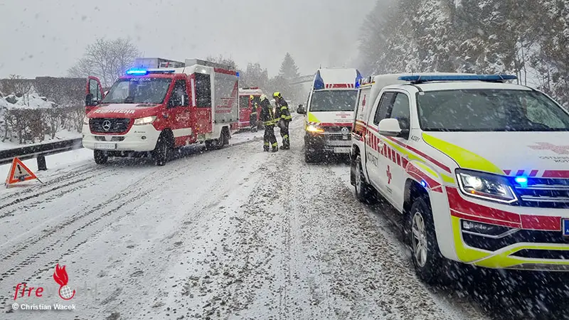 BAD ISCHL (OÖ): Dienstagmittag, 30. Dezember 2025, wurden die Feuerwehren Lauffen, Bad Ischl, Pfandl und Bad Goisern zu einem Verkehrsunfall mit Personenrettung nach Lauffen alarmiert.