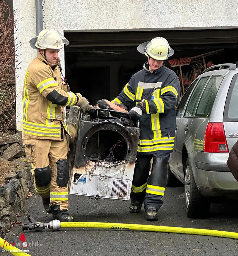 KÖNIGSWINTER (DEUTSCHLAND): Die Freiwillige Feuerwehr Königswinter ist am Nachmittag des 1. Januar 2026 zu einem Kellerbrand nach Königswinter-Berghausen ausgerückt. Im Keller eines Einfamilienhauses brannten eine Waschmaschine und ein Wäschetrockner. Das Feuer konnte schnell gelöscht werden. Rauch wurde durch die Einsatzkräfte mit einem Lüfter aus dem Gebäude herausgedrückt.