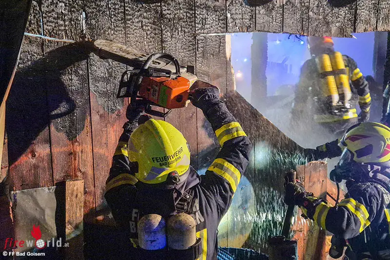 GOSAU (OÖ): Kurz nach Mitternacht wurden die Kräfte der FF Gosau am 1. Jänner 2026 zum Brand einer Hütte alarmiert. „Bei unserem Eintreffen stand das hölzerne Nebengebäude in Vollbrand“, schildert Einsatzleiter Gerald Brunmayr die Lage beim Eintreffen.