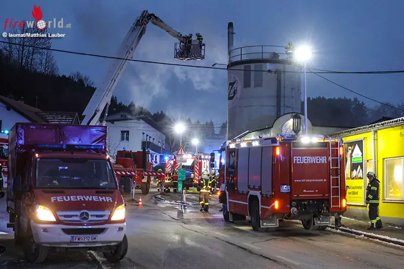 LAAKIRCHEN (OÖ): Sechs Feuerwehren standen am späten Montagnachmittag, 5. Jänner 2026, bei einem Silobrand bei einem Bäckereibetrieb in Laakirchen (Bezirk Gmunden) im Einsatz.